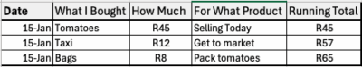 Daily Sales: R400 (seems good!)