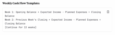 Create a weekly cash flow forecast that looks 13 weeks ahead. This gives you enough runway to spot problems and take action.
